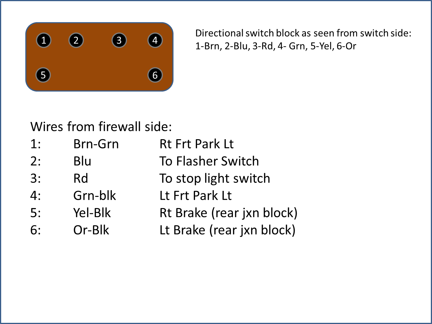 On my 1954 Hornet, I had to replace my directional switch. There are 6 wires coming from the switch to a junction block. However, there are 8 wires in the back of the block. What is the reason? Also in replacing the flasher for the directionals does It have to be positive ground