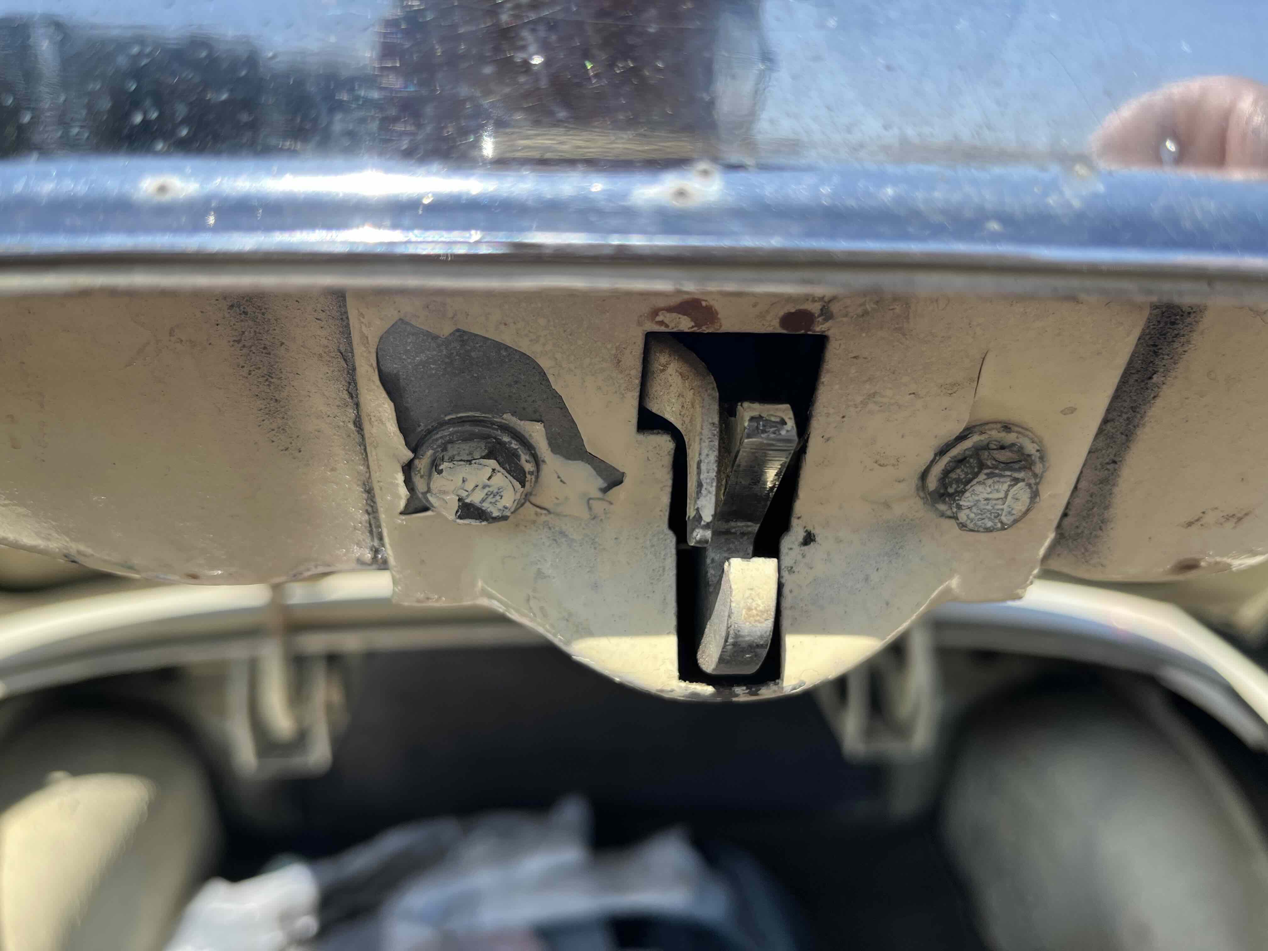 Proud owner of a 1953 Hornet, whose trunk won't latch. Any advice? The bar at the other end is extended upward as far as it will go. It seems that the latch on the trunk itself (pictured) might be recessed too far. Not sure what to do - nothing bent or broken has been identified.