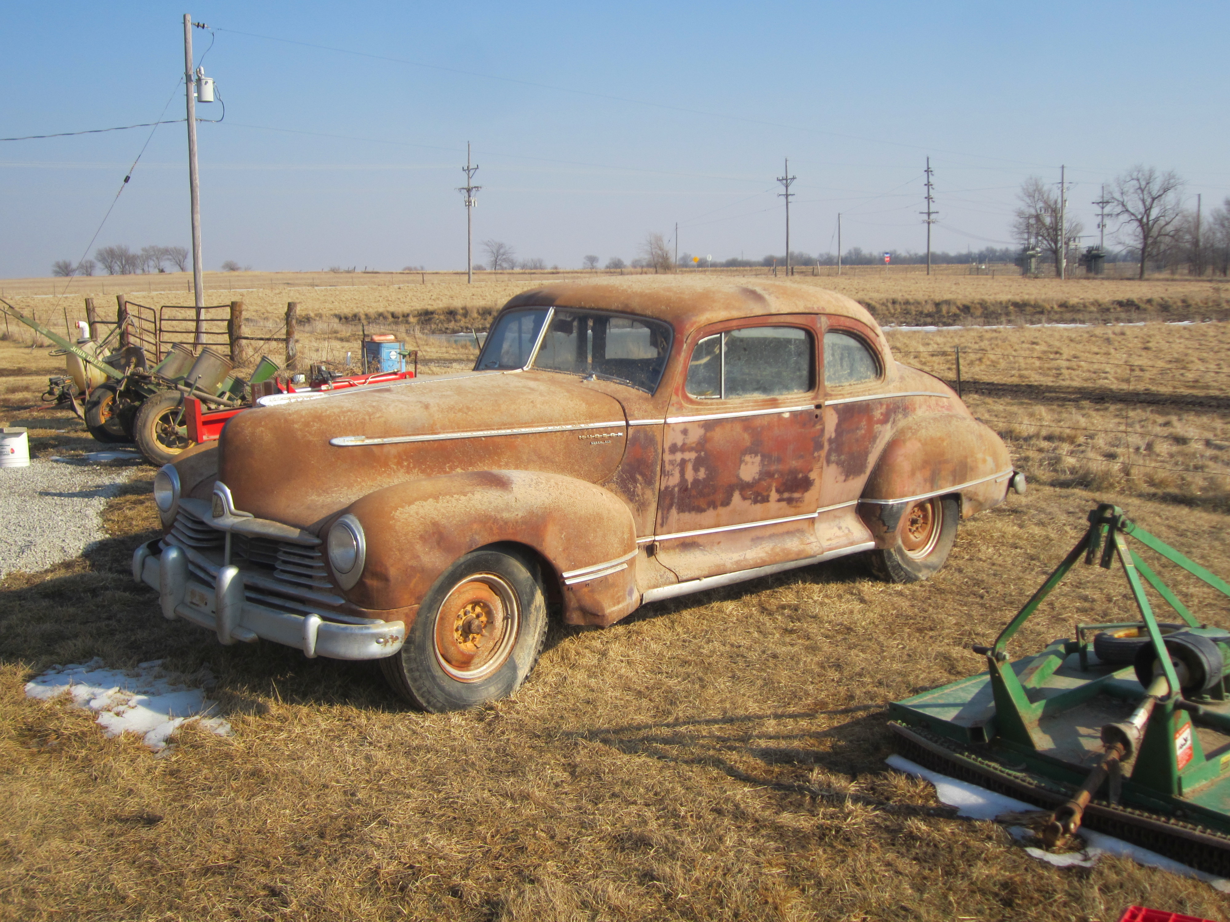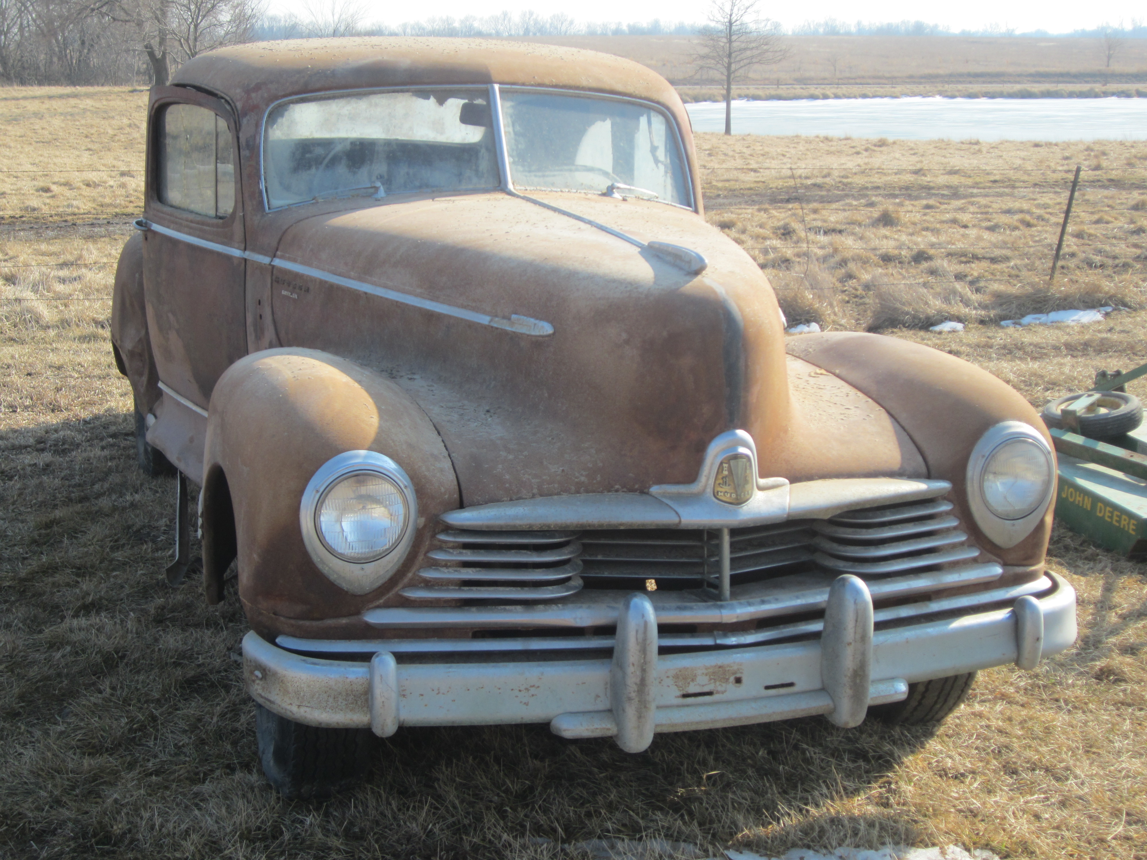 Up for Auction on Saturday, March, 22, near Edgerton, KS. Hudson Super Six, Business Coupe, not sure what year, serial number 17119484. No title, as is, where is. Rusty floors, dents, etc., animals have been evicted! Any idea on value?