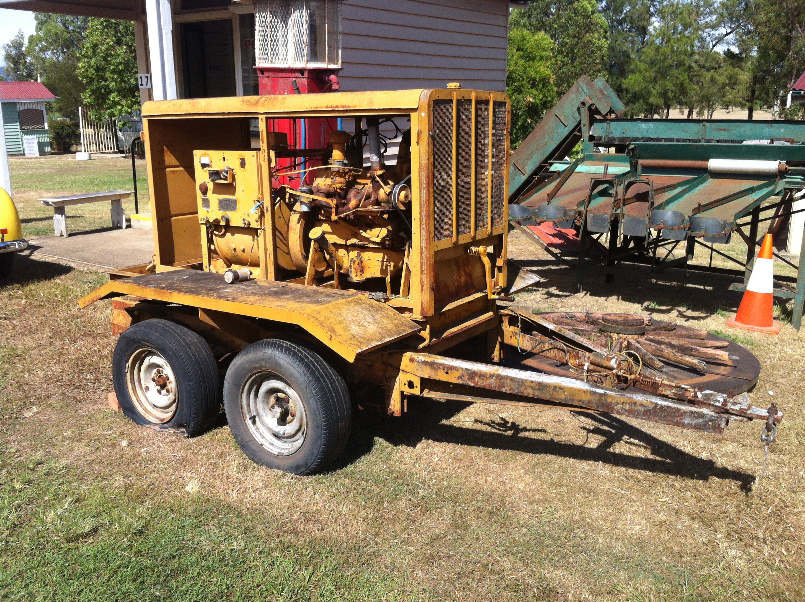 This is an interesting originally skid mounted welding set, 300 amp 80V powered by an A model engine, professionally made probably in the mid 30s.