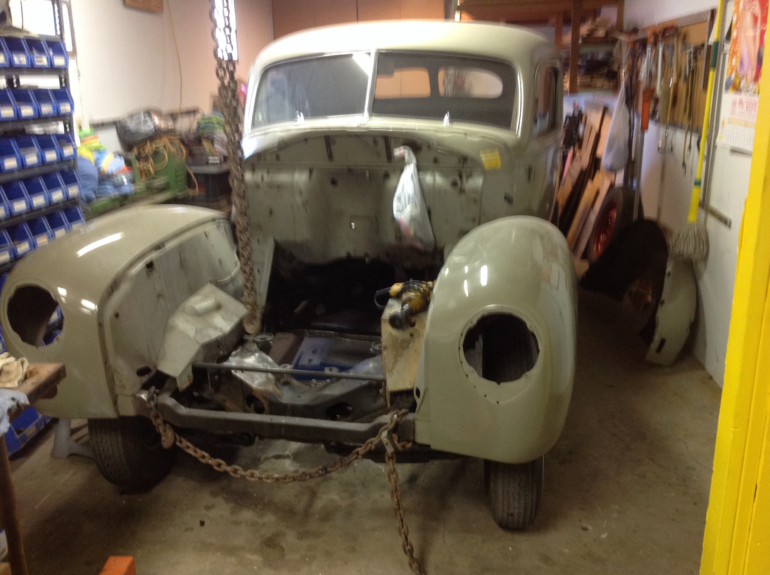 Attached are a couple pics. One from last year and one from the present. When I put it back together the body will be painted a California cream, which is a 40 Hudson color.