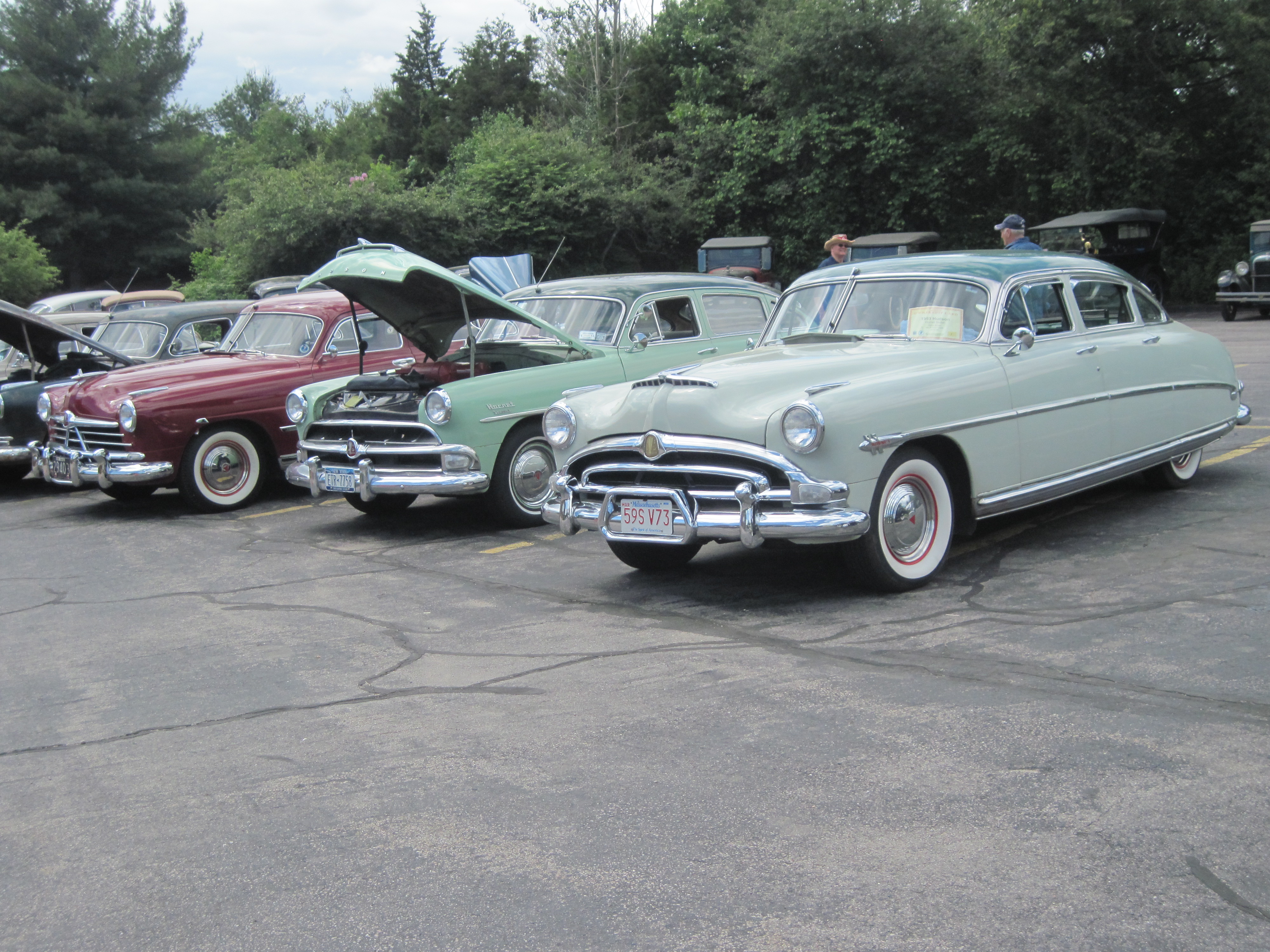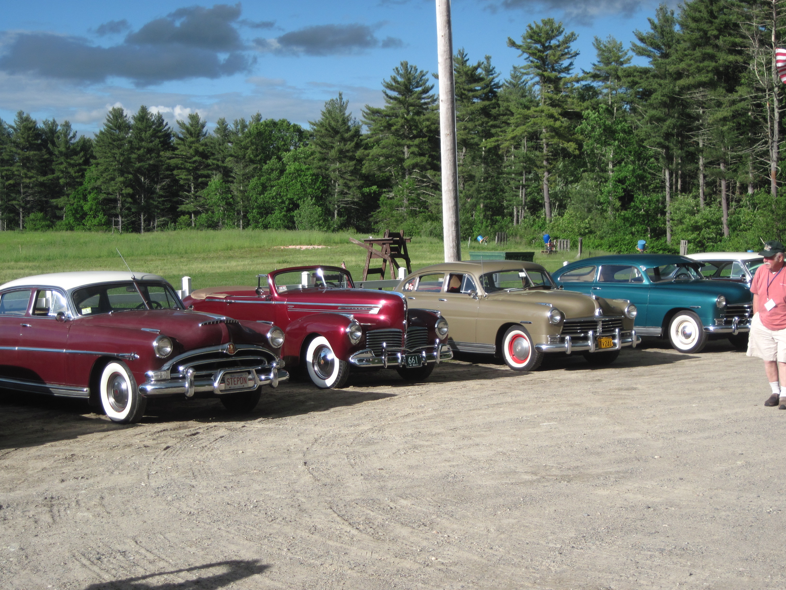 The Eastern Reginals in Mansfield,  Mass are now over.  It was a good meet and time reconnecting with club menbers not seen since last year.  Thursday day/night was a bummer because of rain and the scheduled evening cruise-in was cancelled due the weather.  Friday and Saturday  the weather was near perfect and the Friday night BBQ was good. We had about 17 HUdson  in the caravan to the venue. Saturday was good also and the Banquet was good with Honoring (roasting) Carl Weber for his 50+ years of service and dedication to the Het..