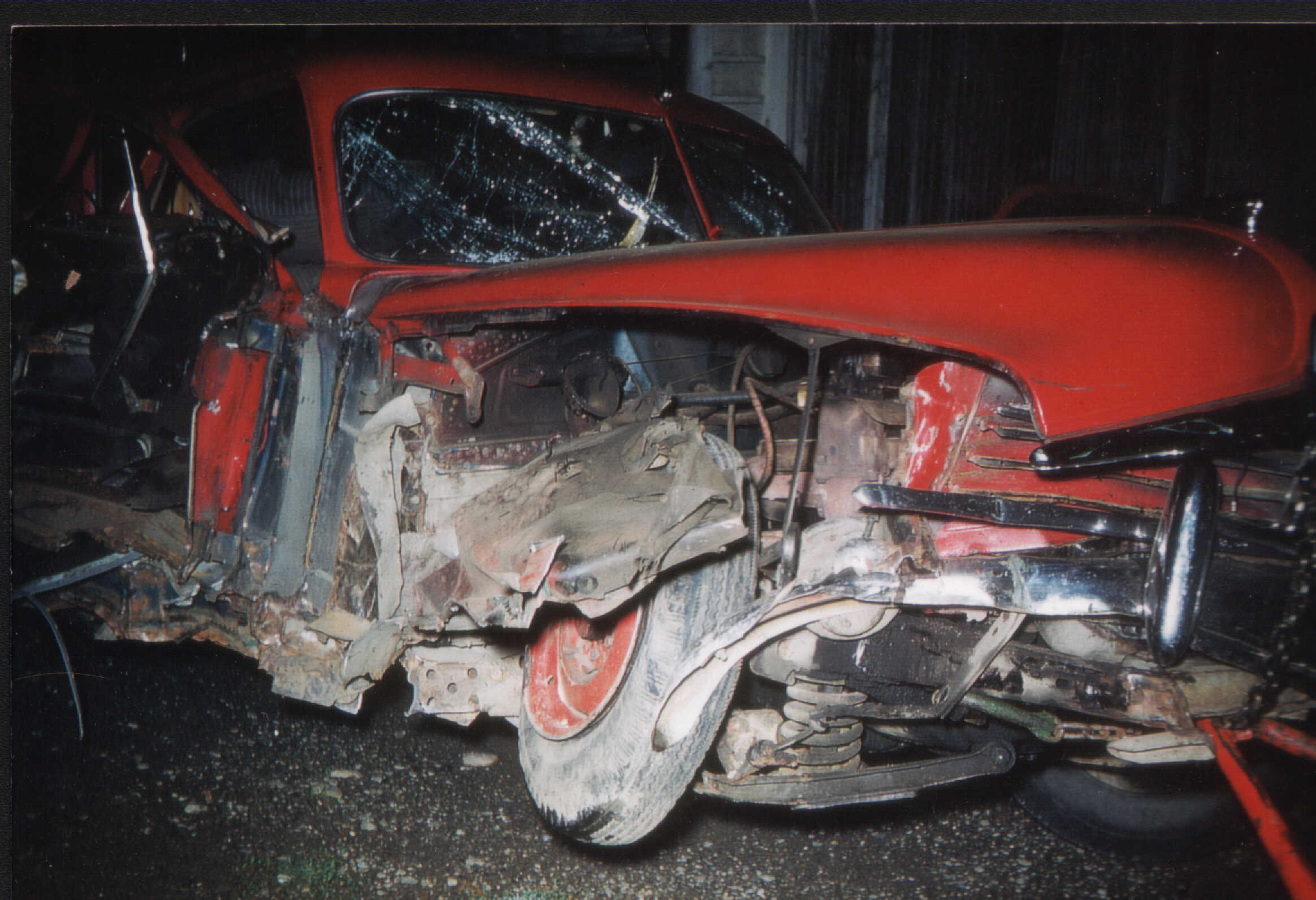 Returning to college, went to sleep, hit a girder bridge..  Bumped my nose on the steering  wheel and cut my knee on the overdrive lockout.  Hurt my pride.