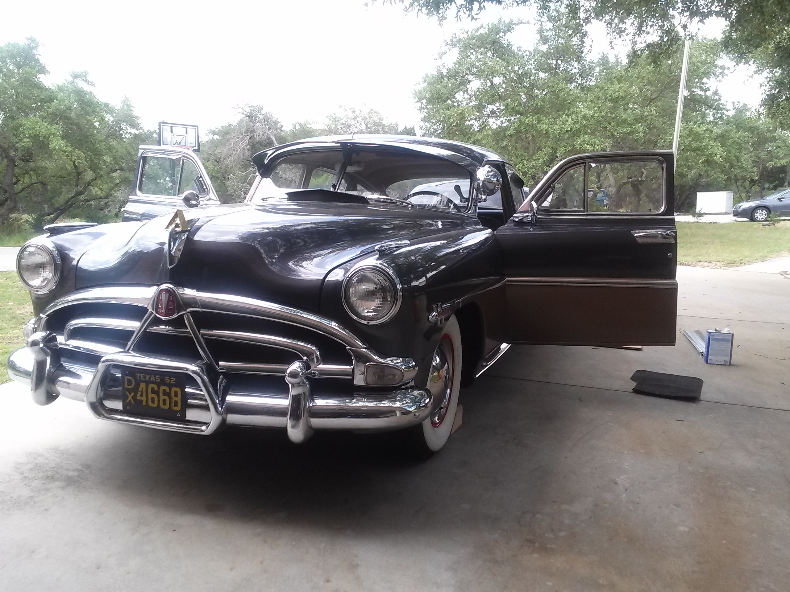 I just went to look at Charles' 52 Businessmans coupe and 51? Super 6. WOW, I was blown away. If he is on here, he would likely describe me as "excited as a kid in a candy store!" Seeing one in person is just incredible, you guys either do not know how lucky you are, or love every second of being in and around your Hudsons. Unfortunately I left the battery to my camera at home in the charger, but I will be seeing more Hudsons tomorrow, so all is not lost! I did not get a chance to hear either of the Hudsons run, as the batteries were dead and it was < 30* outside. The styling, spacious, sleek and did I say spacious interior is just captivating! When he let me sit in the driver seat it was fantastic, like getting sucked into a different world. The 262 (in the super 6) and 231 (in the businessmans coupe) were a real treat to look at. Lots and lots of room to work on everything. I am not a very tall person, so reaching over to work on a future Hudson might not be possible without a step stool. Are the fenders at all removable? Perhaps they rotate out like a Brockway truck? Charles showed me where you lubricate the clutch and pointed out that the master cylinder was underneath a little hand hole on the driver side floor. I was quite surprised to see that there was no oil filter on the engine. Otherwise, it looks like a very simplistic vehicle, but I know there are a ton of engineering marvels and quirks which allow it to look that way. These cars are quite enchanting, Im in love and I havent even seen or heard one in the daylight.............