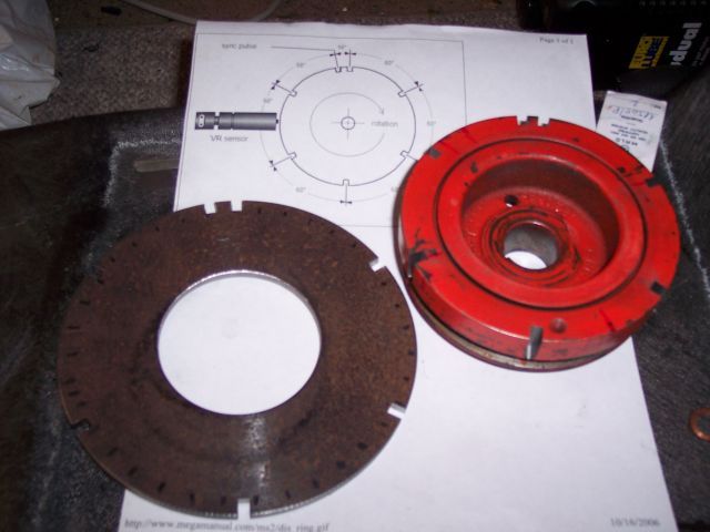 I thought about taking an old distributor and fastening a reluctor wheel to the top--with measured cuts of course then with a pick up from a GM 3800 and wastefire system having a more or less modern ignition system. We did build this at Wayne CC using first a mock up reluctor wheel with a dimensions machine out of plastic to get the size correct and have it affixed to the shaft where it should position. So far have not cut one from steel so the magnet will work when signaling the waste fire to fire one of the three coils. I did convert this car to 12 volt and new relays for the lights as the old wires to the "hi/lo" headlamps from the step on foot switch were all bare from age. Used a std el cheapo relay using ctc30 in 87 out and the old power from the foot sw as 85/86. Keeps the light ctc where you can see it and fused too