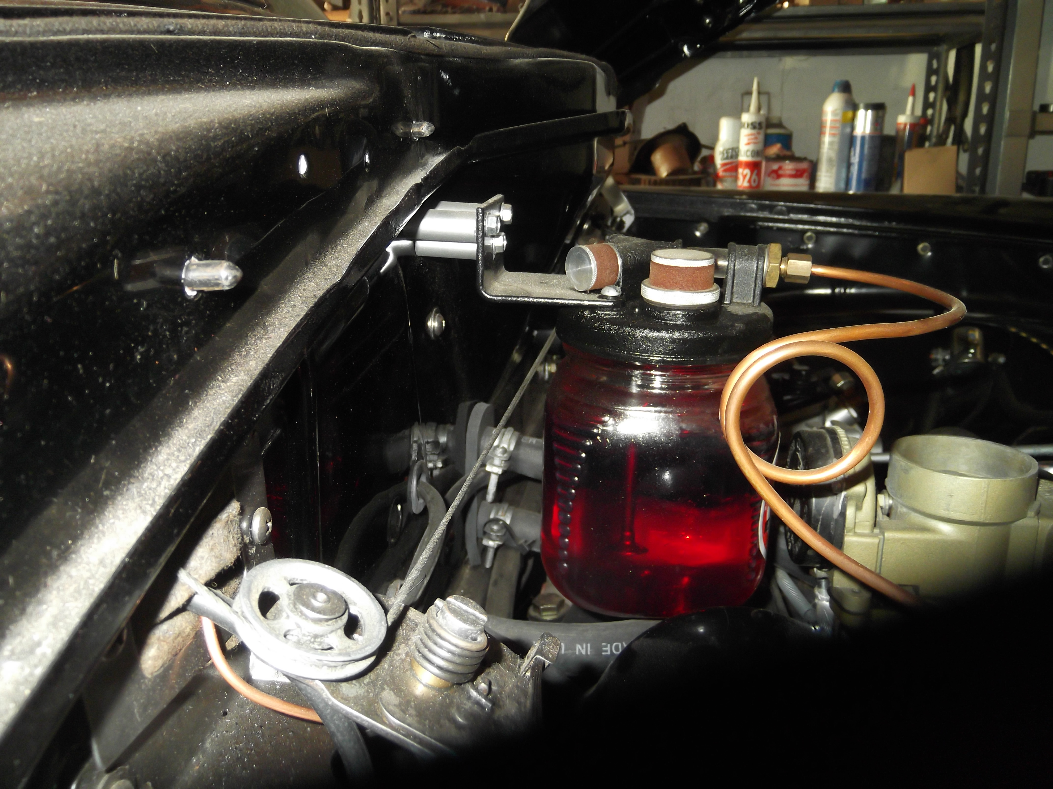 Neat looking engine oiling device.  Bet it gets comments and questions when you pop the hood at a cruise night or even a Hudson meet.  I suppose the main reason for using this versus just adding Marvel Mystery Oil to the fuel tank is convenience and perhaps being able to regulate the amount of oiling to the upper cylinders.