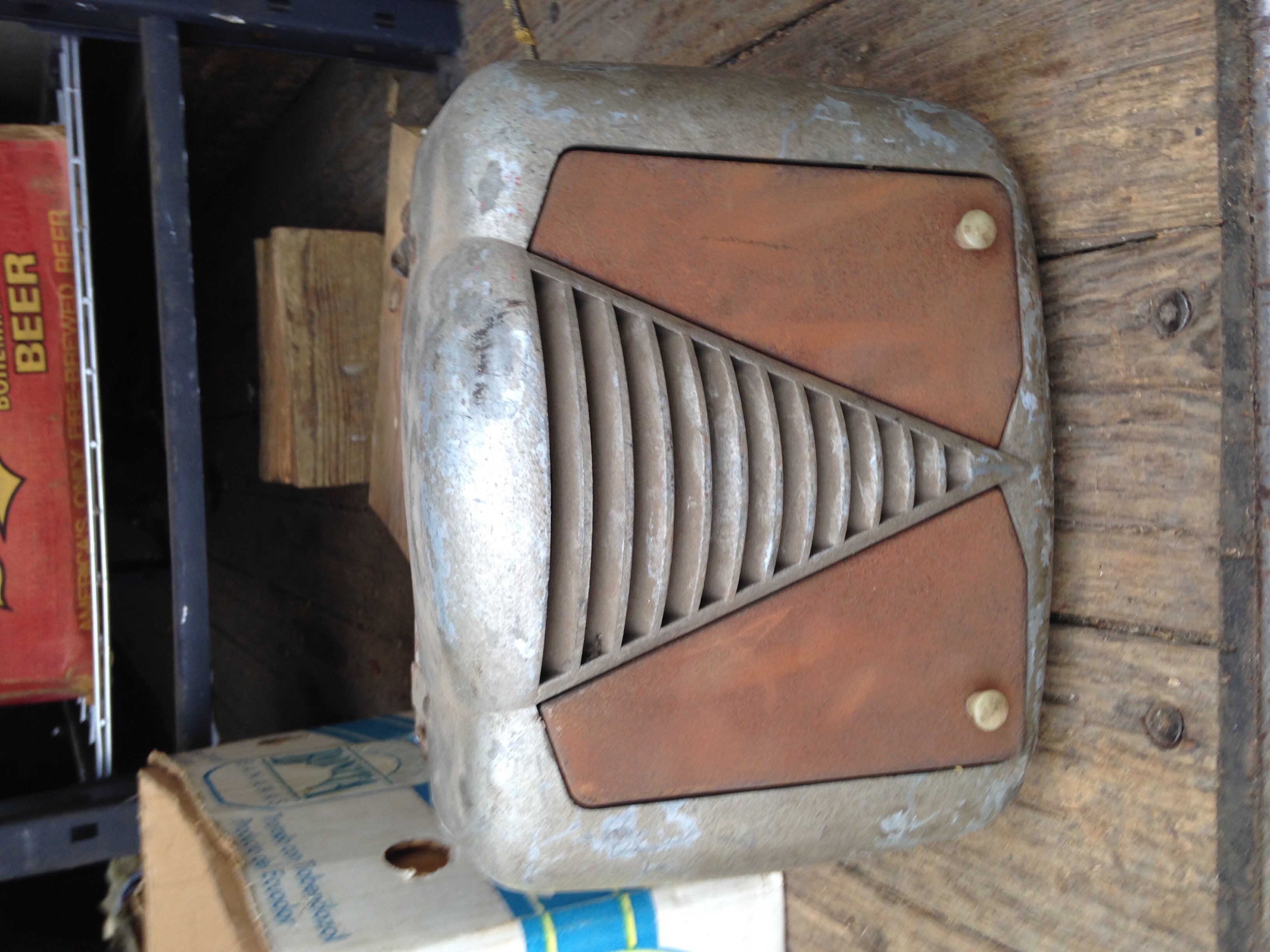 Its a heater from the thirty's looks like a  McCord or a harrison Art deco style 6 volt