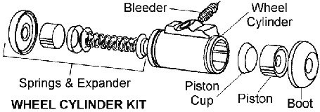 Paul most wheel cylinders are comprise the components shown in the attached image. The rebuild kits will contain all components except the two pistons that are located behind the external rubber covers. I use a brass drift and tap on one of the Pistons to drive stuck components out of the cylinder.0