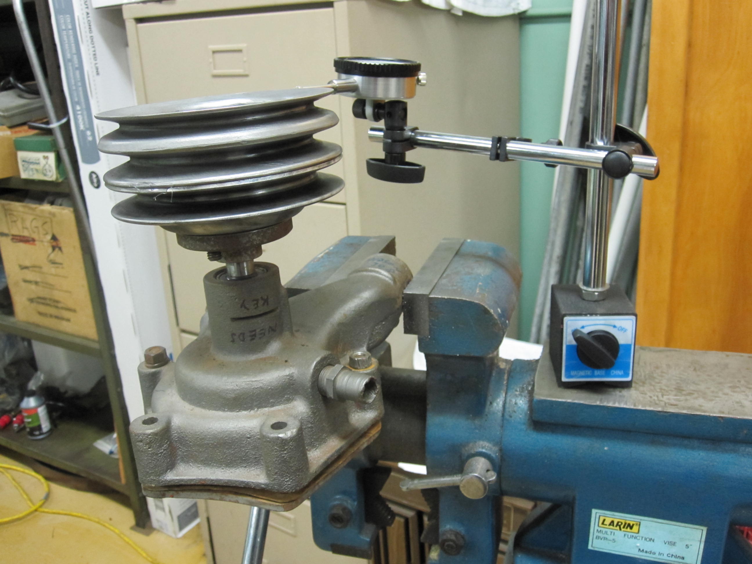 You can take 2 single crank pulleys and make a double similar to the way I made the WP pulley??? I use 1/2" belts on the deep 3/4" crank pulley without a problem in years; rather not, since belts are very tight, but no choice. BTW,using back 2 grooves on new WP pulley, 4th photo.