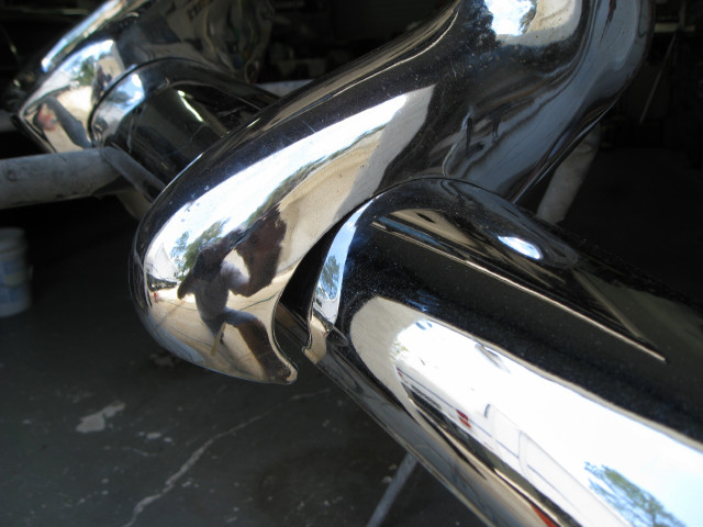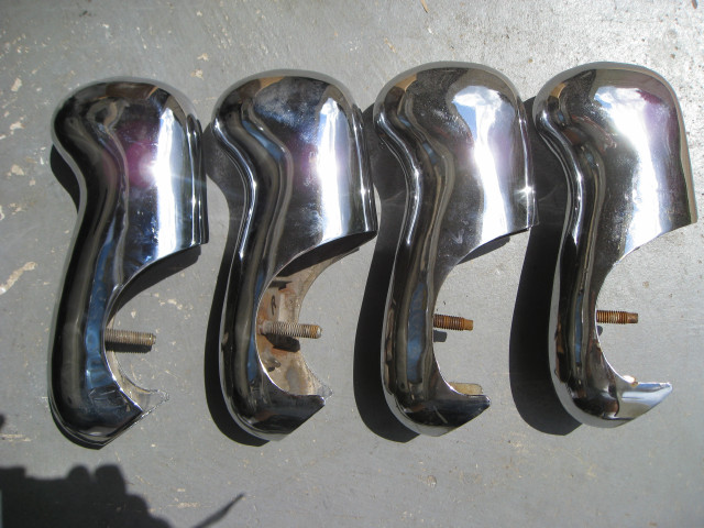 Barry, The correct wheel cover for this car is a complete stainless wheel disc that has the red triangle painted in the center of the cap. Beauty rings optional. Up to the 1951 model year Hudson had a galvanized steel base and a plated steel cover. They were heavier and prone to rusting. With a full stainless cap they may get dirty or dinged but they will not rust. BTW there is a slight difference in the front and rear outter bumperettes. The picture you took of the 4 bumperettes are showing 3 front and one rear. The first one from the left is a rear bumperette. It looks very much like the front except the angle of cut of the bottom part of the rear bumperette imndicates it a rear model.0