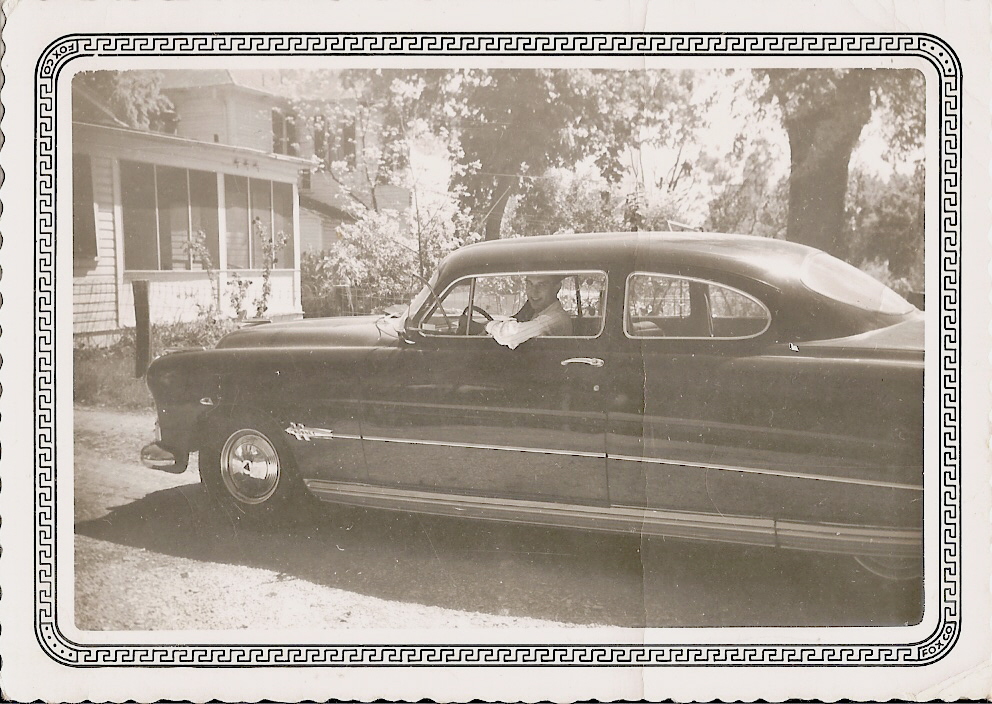 enclosed find original wheel covers on a 1951 coupe in 1953. I'm the good looking stud in the car.0