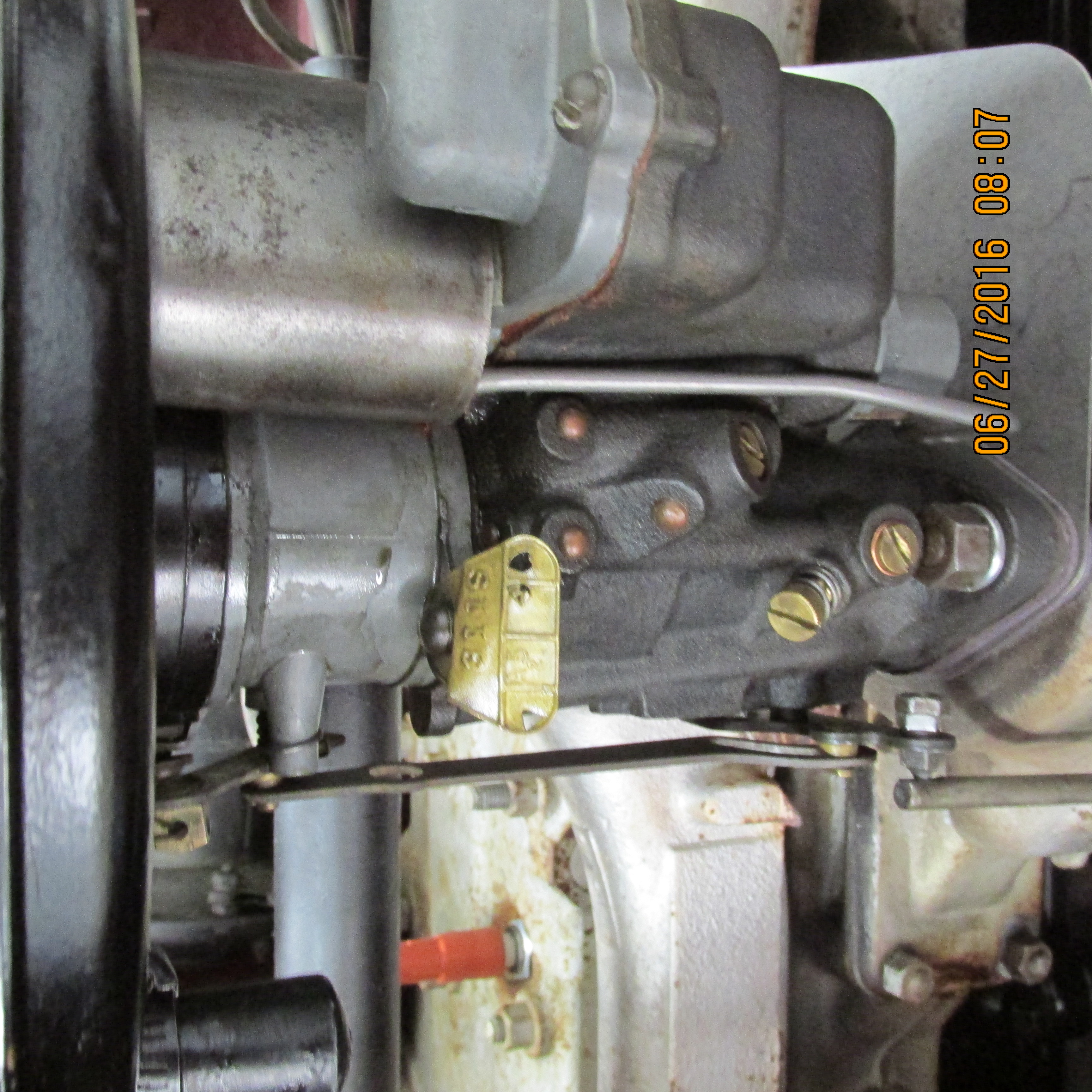 You can see by the photos that the carb. looks like it has just been rebuilt. The previous owner told me he had just rebuilt it shortly before selling me the car. The car has just been having a loss of power and while it starts and idles great, it is a dog going up any hill. The plugs load up with black soot  (dry) fast which tells me the fuel is rich and when I removed the dust cover I saw that the accelerating pump was not even hooked up. Fixed that but the car still is doggy. Not sure what the previous owner did to the carb. but he used silicone on all the gaskets which I am not a fan of.