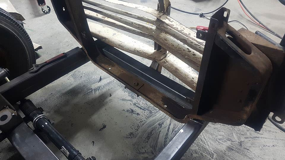 Next is taking out the engine. Welding up everything. Brace up some bits with some gazeting. Notching the front rails for bit more clearance on the steering arms. Drilling the panels holes and ya ... golden. Oh and trim those long ass rails and add the rads front brace. Sigh list goes on.