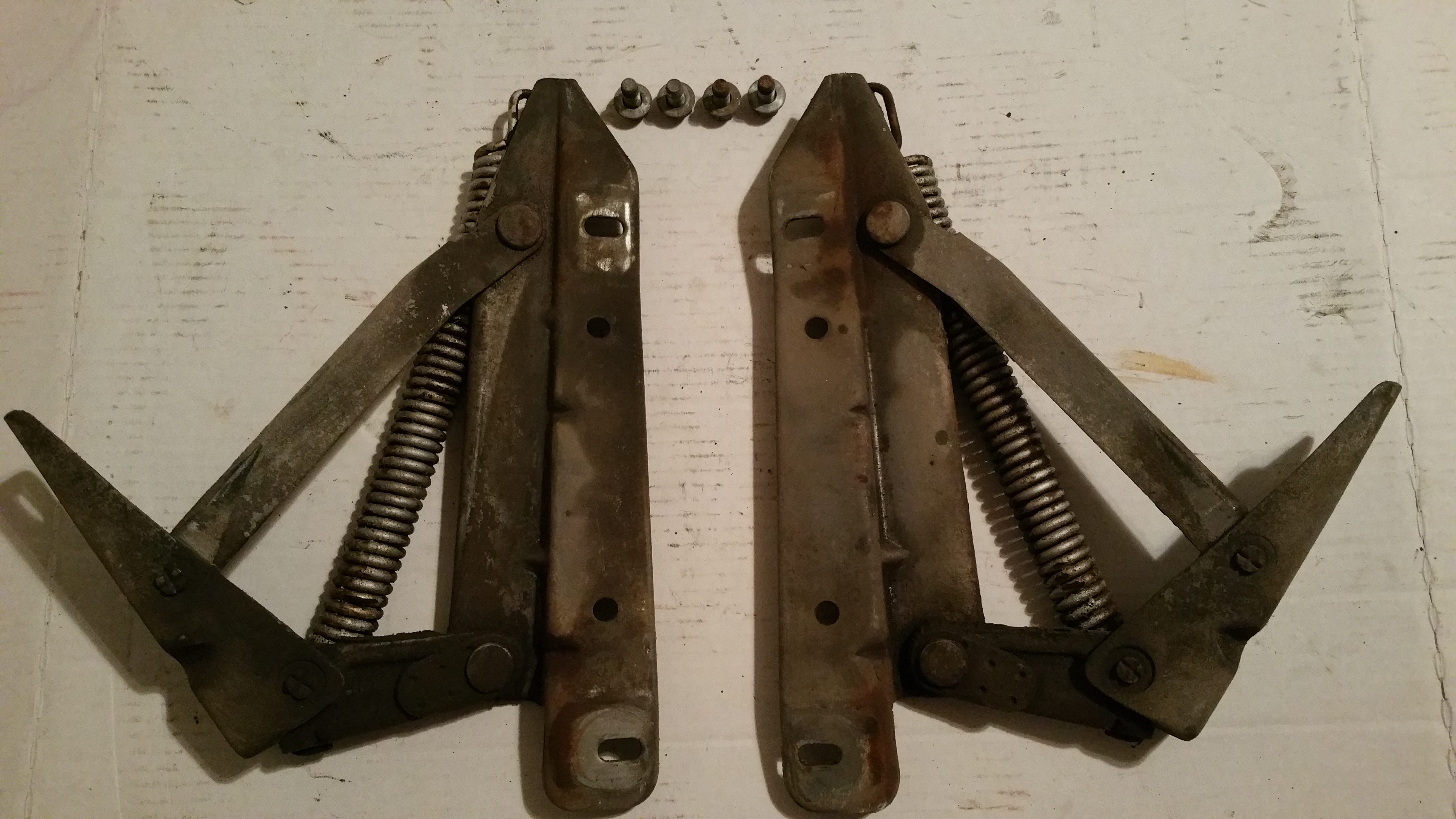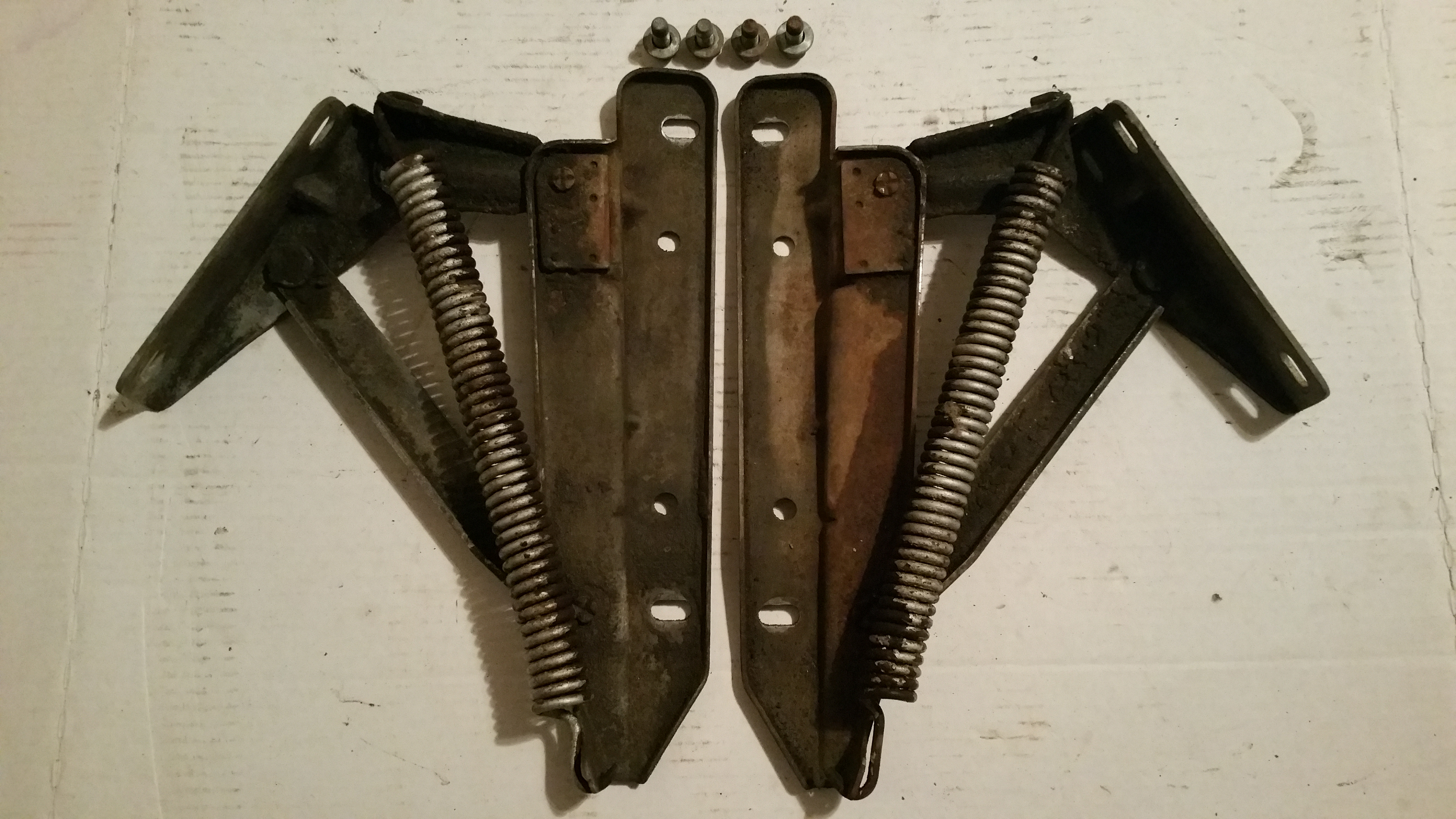 Hudson Jet hood hinges and springs, both need a good cleaning. $50 for the pair including shipping to Lower 48. Thanks, David