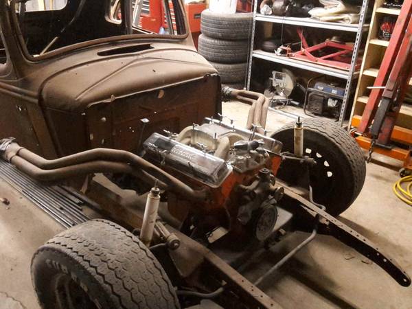 I've got a 34 Terraplane Coupe that I've been working on for years. It has a 406 Chevy small block with a TH350 trans, 355 gear 9 inch ford rear/with posi, mustand ll front end, Wilwood disk brakes and Ride Tech air ride. It's at the painter getting painted and then off to the upholster. If you have any questions along the way, let me know. I've probably encountered most of the issues you'll have. Body parts I needed were all found through this forum. You'll find these folks to be very helpful. Your pictures didn't show up on your post for me, so I don't know if you're running the hood side curtains or not? If you're not, and still have the hood side latches, I'd be interested in the front latches and brackets. Good luck on your 35!