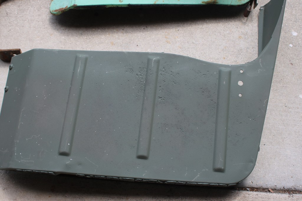 O.k, so what's missing? There's a stainless piece that goes on the outside of the rear tray. You can see it in one of the pics on the passenger side of the pan. I only had the one piece, but another could fairly easily be made from a stock longer piece. Various nuts, bolts, washers are also incomplete (never got around to putting it all together). Since my car is a '52, a lot of alteration had to be done to make it work and I never really paid attention to all of the parts and pieces as it pertained to making it all 100% original as it would be for a '54.