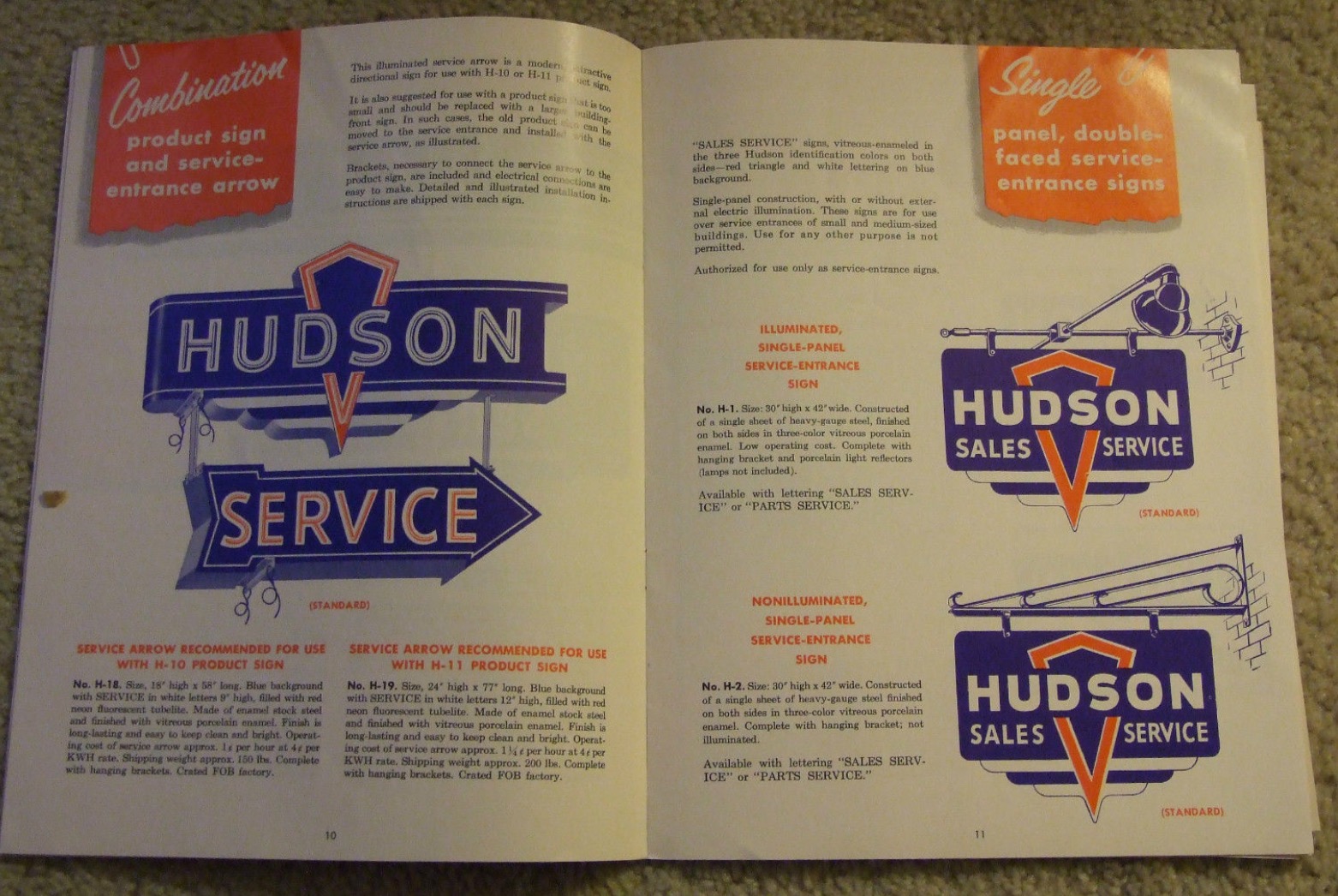 Gee, the carpeting as background for the "Approved Hudson Dealer Signs" booklet looks very familiar!  Could those photos be from that "crazy guy" who's trying to get $10,500.00 for a "Hudson Sales Service" miniature reproduction sign on eBay?