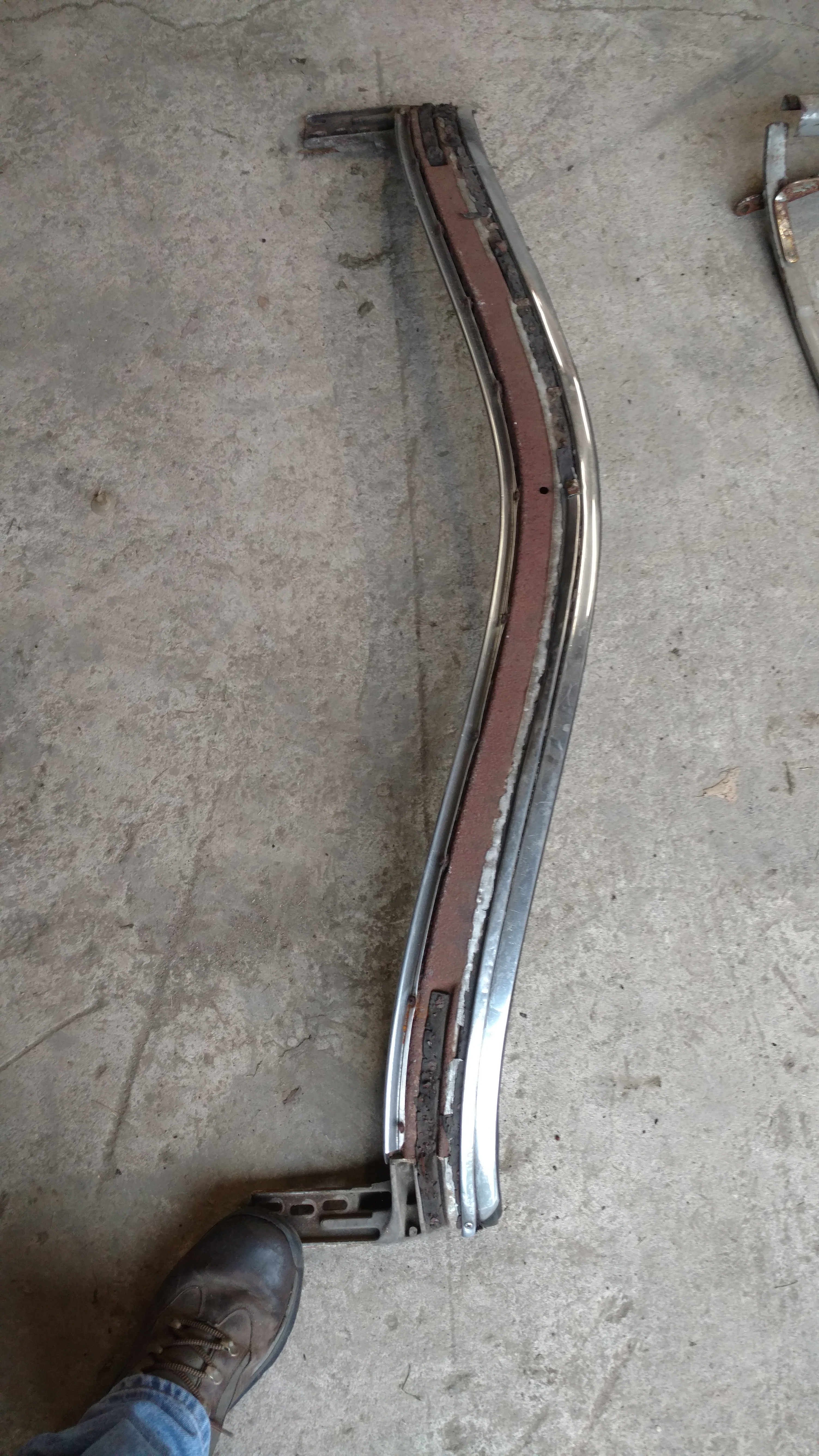 Wow. Where were you 10 years ago when I was sourcing parts? It would have all been sold. Do you have the stainless that goes on the outside of the convertible top that covers the rear bow? Also, (long shot), do you have the connector that joins the two stainless pieces on the very front edge of the cloth top (on the front header)?