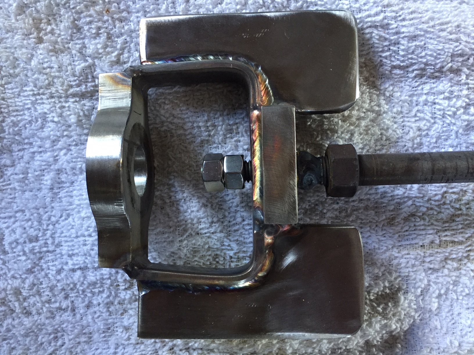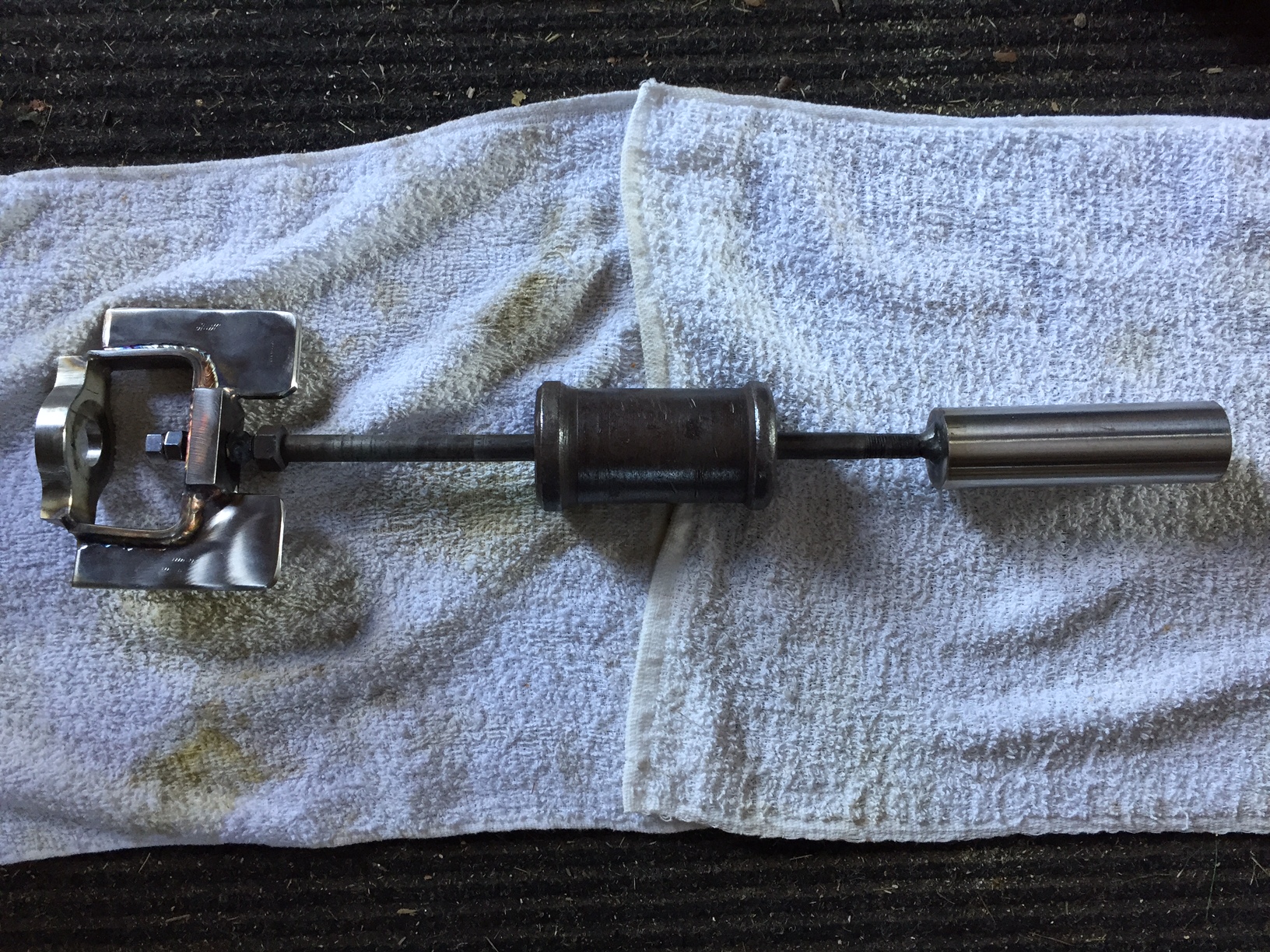 Made a slide hammer of sorts, but he weight on the little dent puller I have doesn't seem to have enough mass to move the axle.  On to field revision "A".
