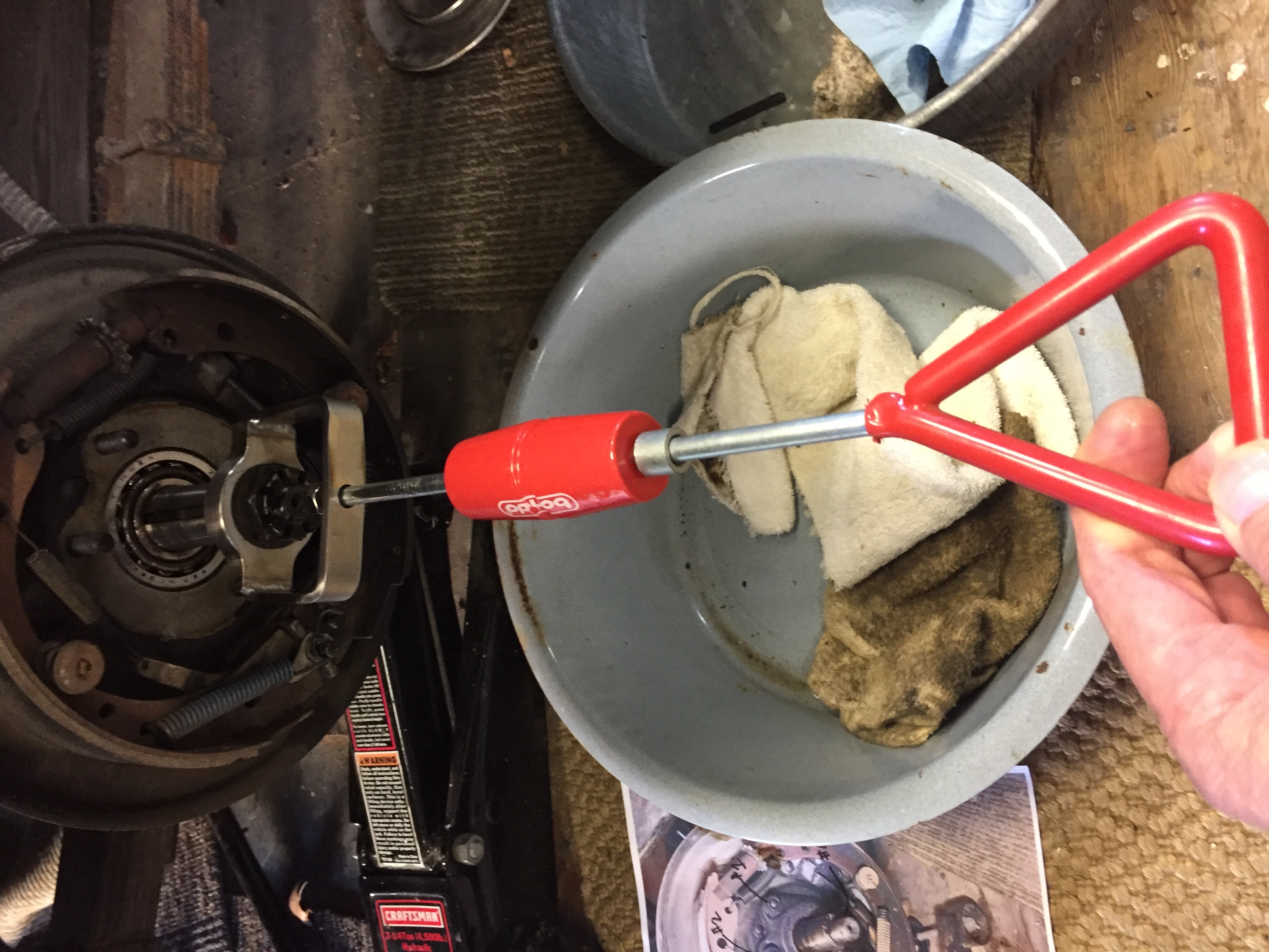 Question??  How to drive the bearing home.  The manual says " assemble read wheel bearing outer cup"  I'm nervous about getting it cocked and not driving it in straight.  Can you use the outer adjusting cap to push the bearing cup in using longer bolts?  Again, nervous about breaking off the ears on the adjusting cap.
