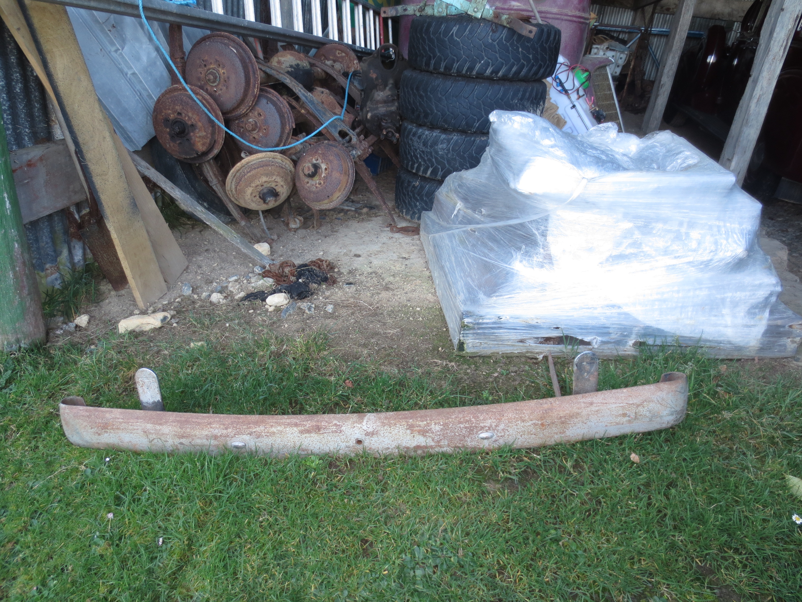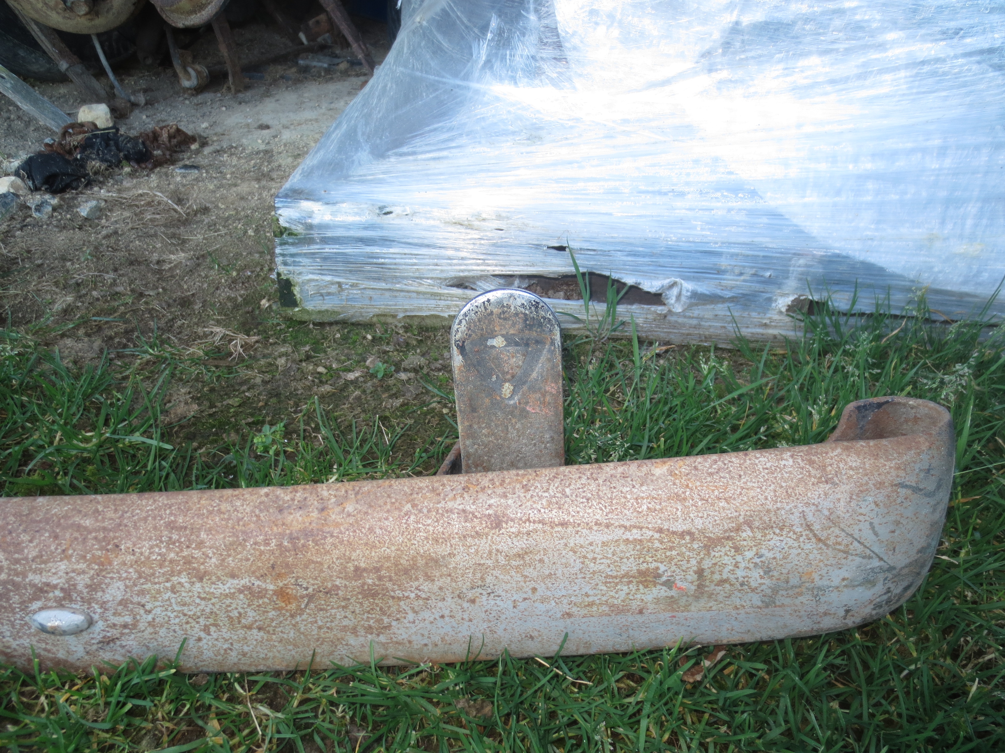 Trevor; that's my point - it's not easy here either. Pretty much, anybody who has anything will not part with it. Just find one more with the Hudson triangle and you can have this one. These were sold on EBay some time in the last couple years - why there were two plain and one with triangle is unknown. I asked the forum at the time if there was some configuration where 2 plain bumper guards were used with 1 triangle in the middle or something - got no responses on that.0