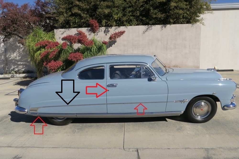 long shot....looking for really nice rear fender stainless trim for driver side, 51 Hudson commodore/hornet, need driver side only, with no bends, or damage. see black arrow in attached pic: